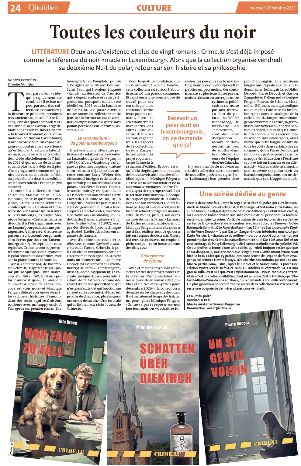 Zeitung vum Lëtzebuerger Vollek du 1er septembre 2023. Bel article avec une petite coquille : qu’on se rassure Didier Debord est bien français ! C’est Pierre Decock qui est historien d’origine belge et résident au Luxembourg depuis 40 ans !
